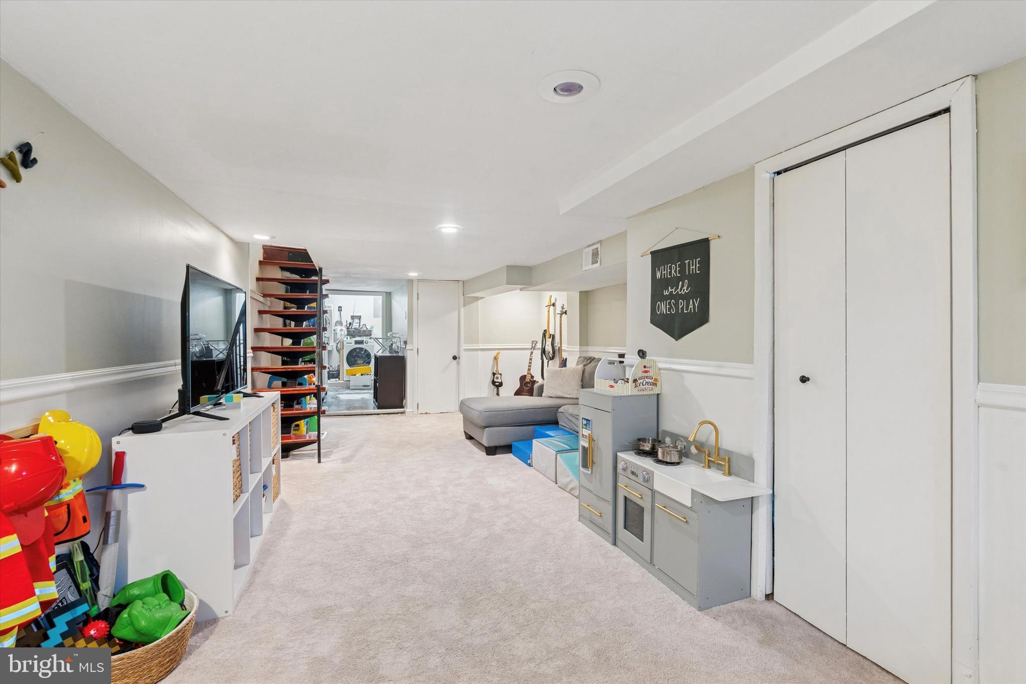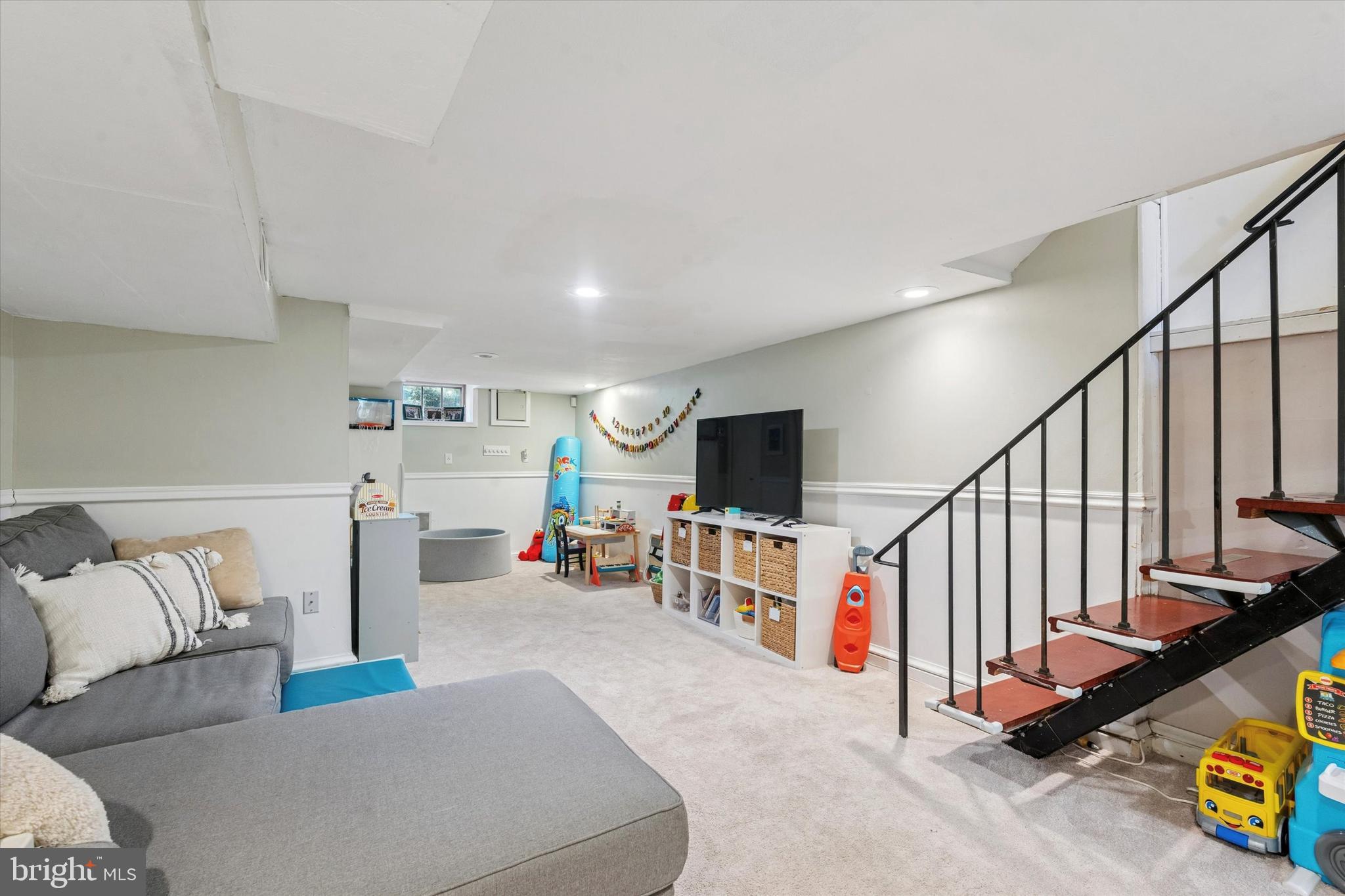 The fully finished lower level provides versatile additional living space, ideal for a media room, home gym, or lounge area. It also includes recessed lighting, a convenient half bathroom, and a full laundry room.
